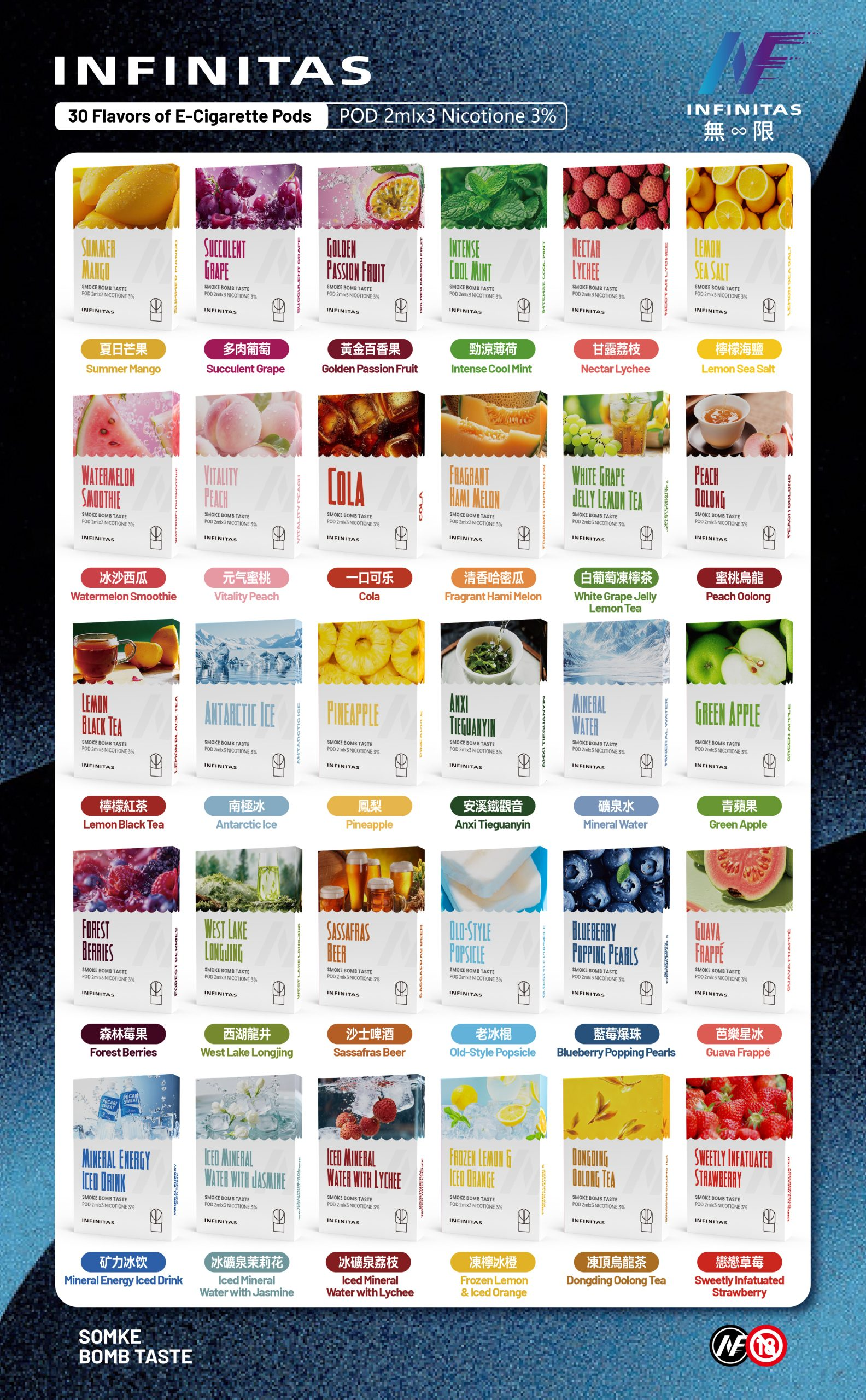 INF 拋棄式煙彈以穩定霧化技術與多樣化口味選擇 為最大特色,嚴選高品質煙油,帶來順滑細膩且還原度高的口感體驗。高密封防漏設計 有效降低漏油風險,確保使用乾淨安心;同時,煙彈容量充足,能滿足長時間使用需求。搭配主機時裝卸方便、契合度高,吸阻適中,是追求便捷、穩定與豐富口感 的理想選擇。與市場熱銷RELX煙彈通用,無需擔心兼容性,輕鬆更換煙彈即可享受極致吸煙體驗。